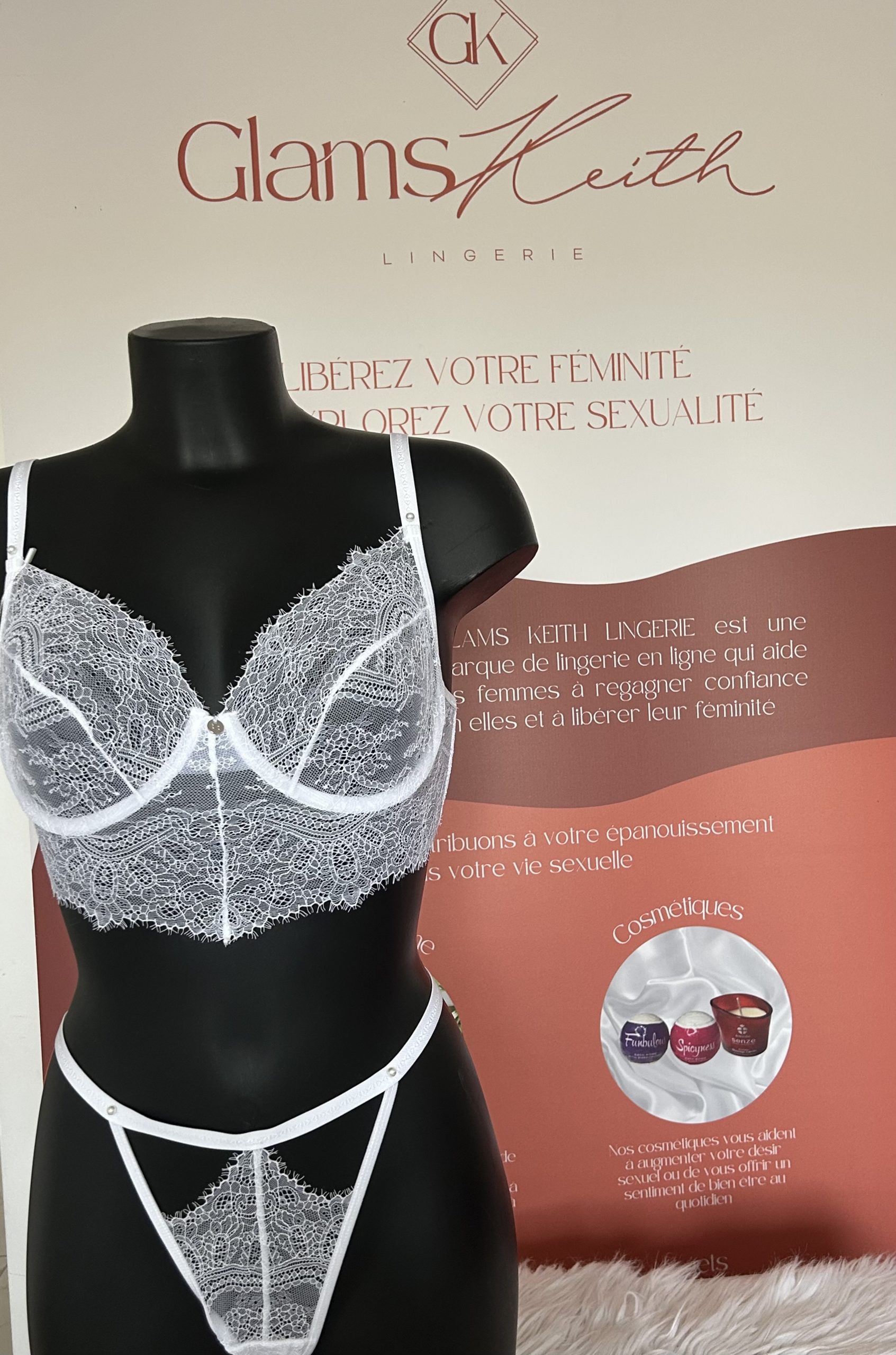 Apportez une touche de raffinement et de sensualité avec cet ensemble lingerie 2 pièces blanc en dentelle fine, conçu pour sublimer la silhouette avec élégance.