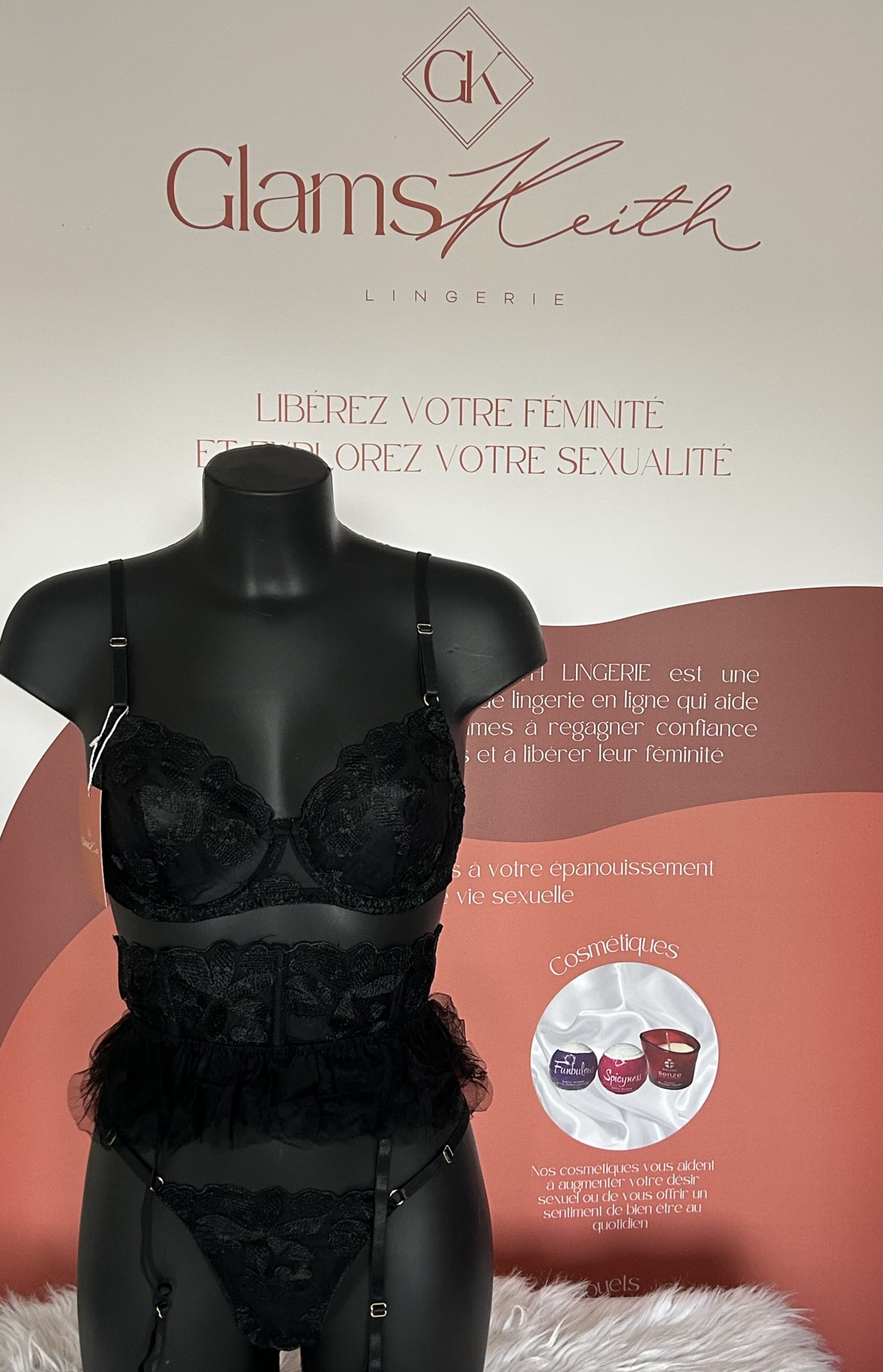 Ensemble lingerie 3 pièces : soutien gorge, string, porte-jarretelles