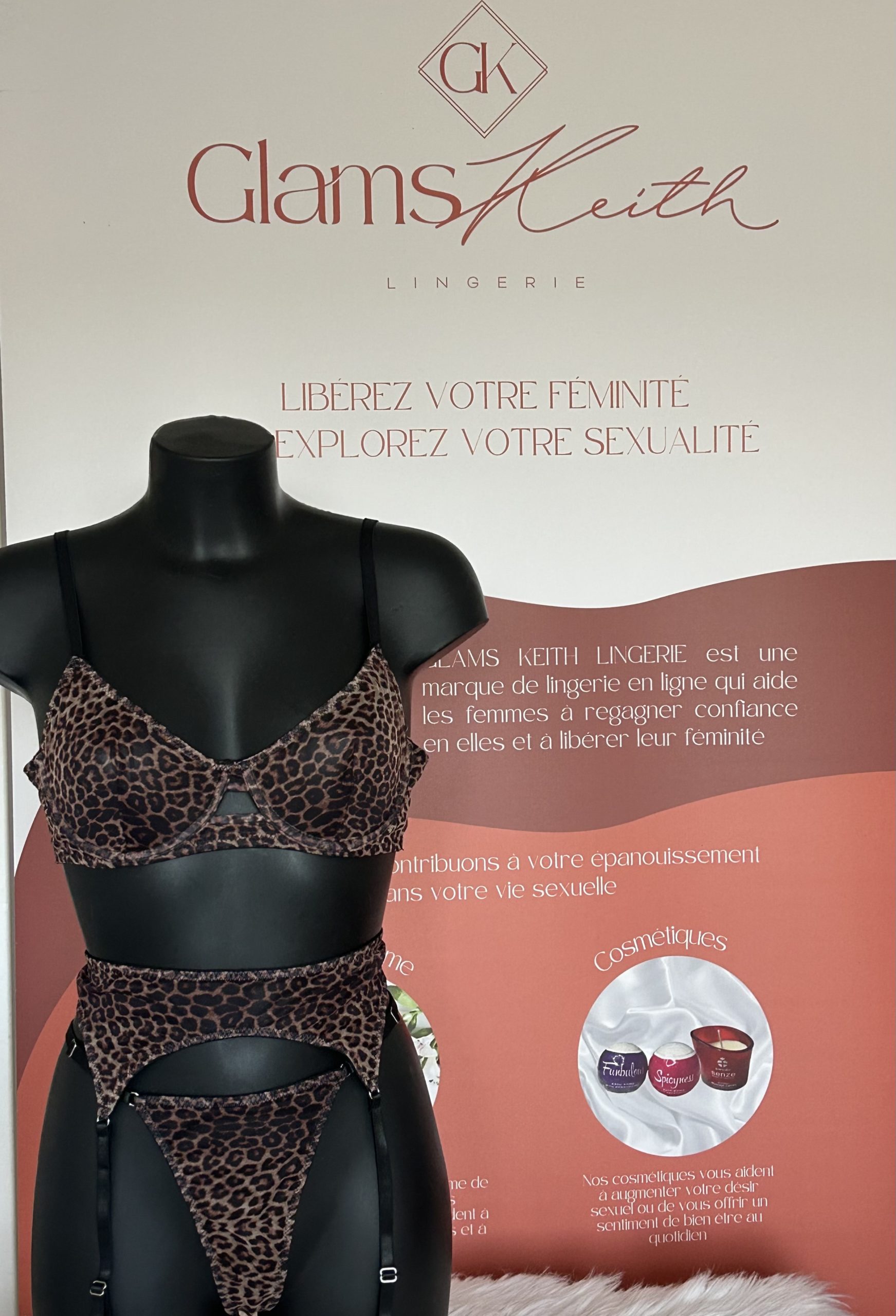 Ensemble lingerie  3 pièces couleur panthère noir maron