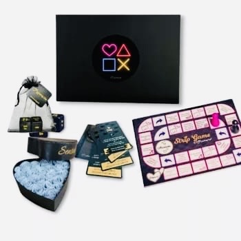 Contenu: 1 plateau de jeu strip game avec 2 pions et sin dé,1 jeu de dés coquins,1 jeu de 5 cartes à gratter , 21 gages d’amour , le jeu de défis pour couple