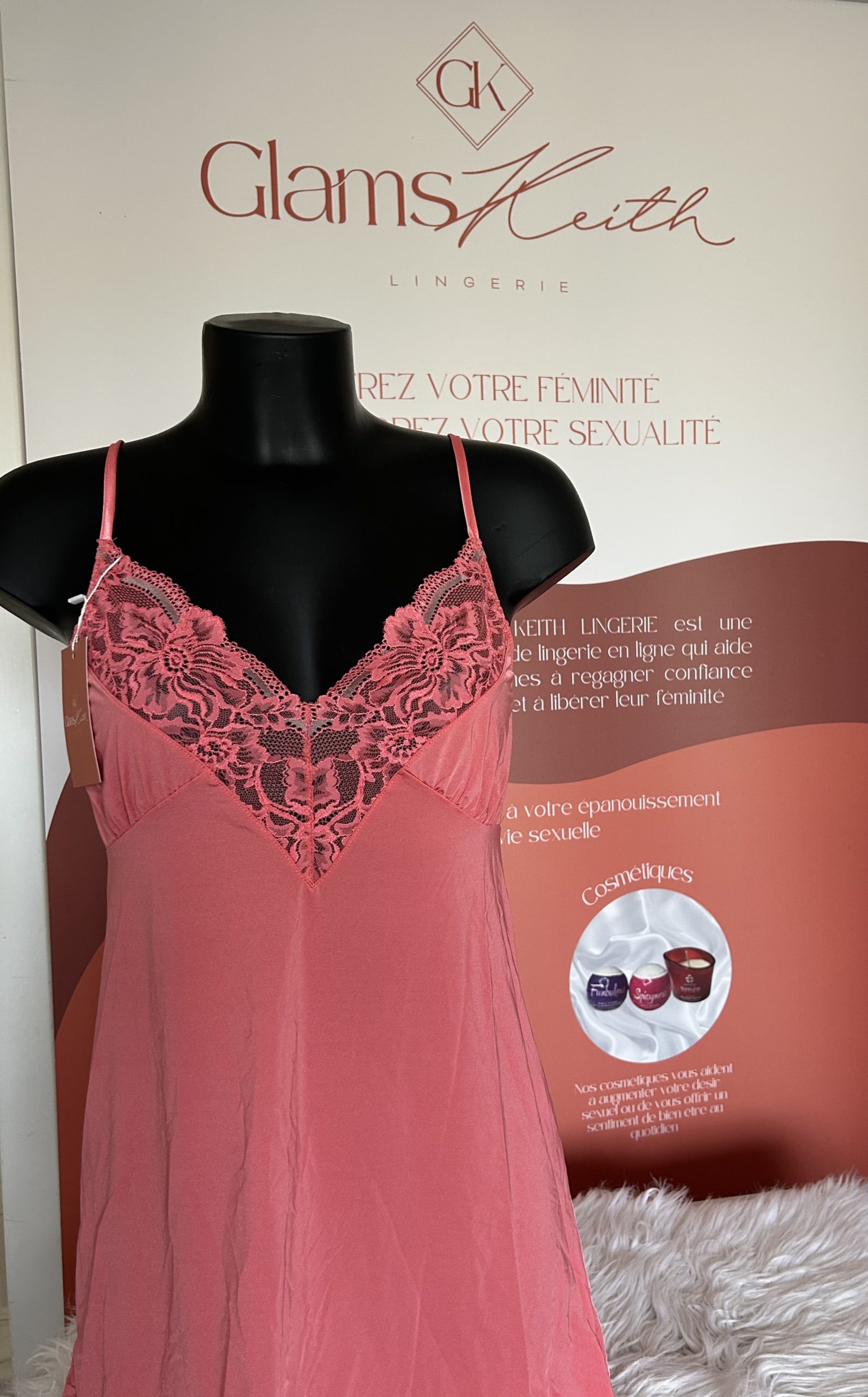 Offrez-vous une touche de douceur et d’élégance avec cette robe de nuit rose en satin et dentelle, longueur mi-genou. Son satin fluide glisse délicatement sur la peau, offrant une sensation de confort absolu tout au long de la nuit.